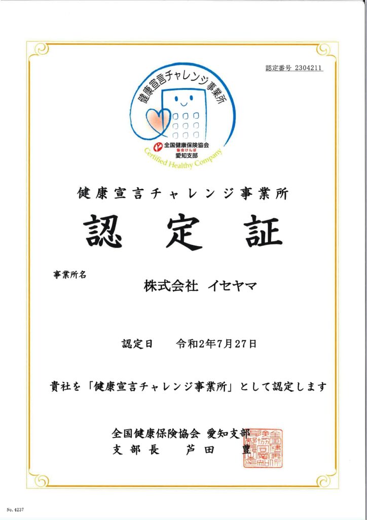令和3年度 健康宣言チャレンジ事業所 - 認定番号 2304211 |